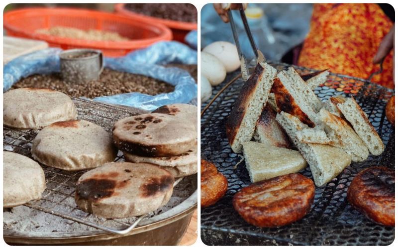 Buckwheat cake, a signature dish of the H’mong people in the rocky plateau, undergoes a meticulous preparation process. Harvested buckwheat is ground into a fine flour, mixed with water, and shaped into flat round cakes. After steaming, these cakes are traditionally grilled or fried. The result is a fragrant, slightly sweet, and slightly grainy treat.