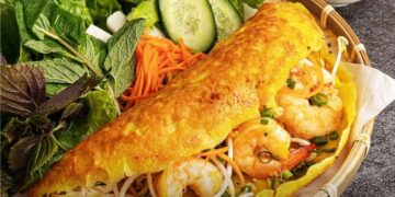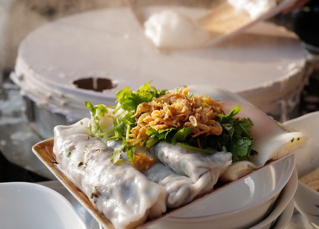 No trip to Hà Giang is complete without trying the local egg crepe, a delicate dish featuring a thin layer of batter enveloping a vibrant red yolk. This unique treat is a must-try for food lovers.