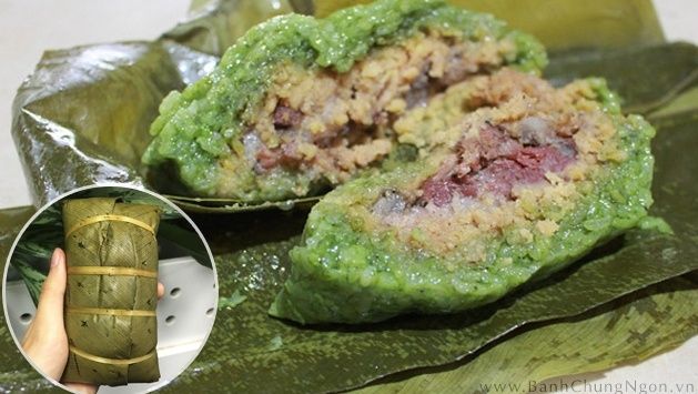 Bánh chưng gù is a specialty of Hà Giang, made by hand. The crust of the cake is green or black depending on the type of rice. If the cake is green, the rice is mixed with lá giềng leaves, and if it is black, sticky rice is used. The filling has both lean meat and fat. A few families in Hà Giang city make these cakes daily, but you have to order in advance because the quantity is limited. Each cake costs about 17,000 VND.