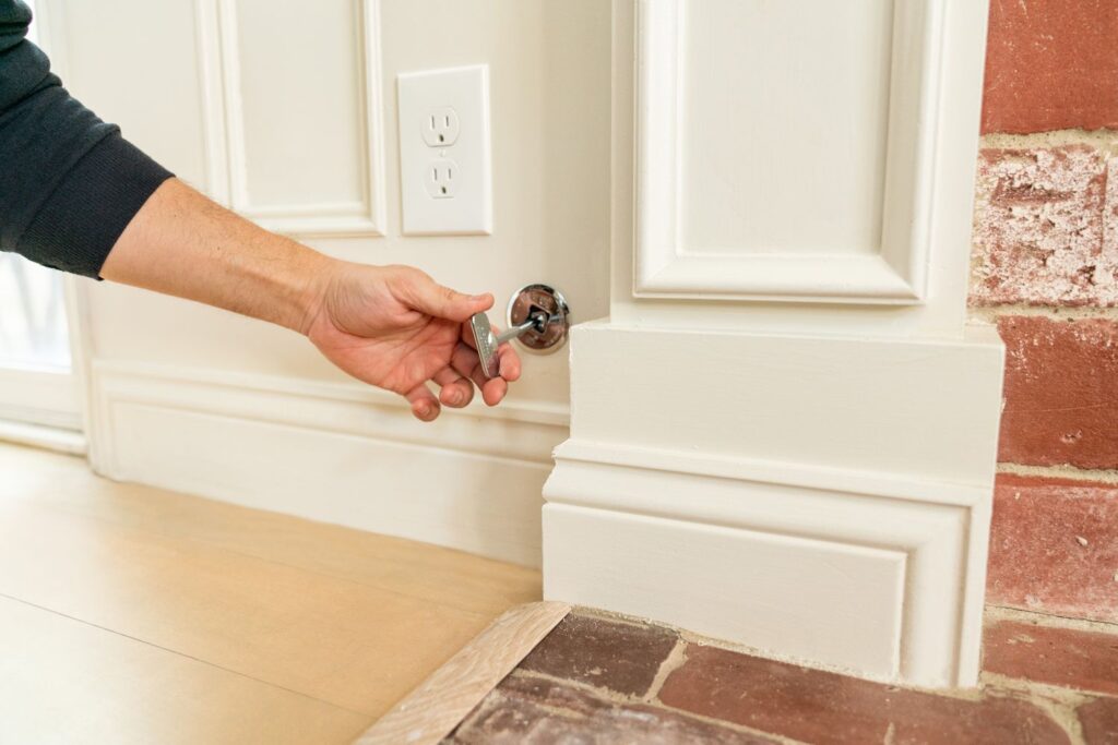 Next, look for the gas valve next to your fireplace. Insert the key into the gas valve. Do not turn the key until you are ready to light the burner. If you turn the key before you are prepared to ignite the burner, you could release too much gas and risk a gas explosion.