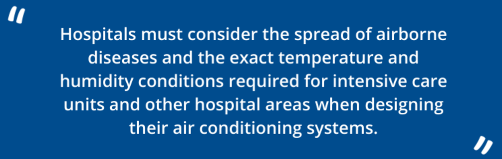 Air conditioning systems and HVAC systems, in general, are designed to create and maintain comfortable environments for buildings’ occupants. Hospital HVAC systems are also designed to keep employees, patients, and visitors comfortable.
