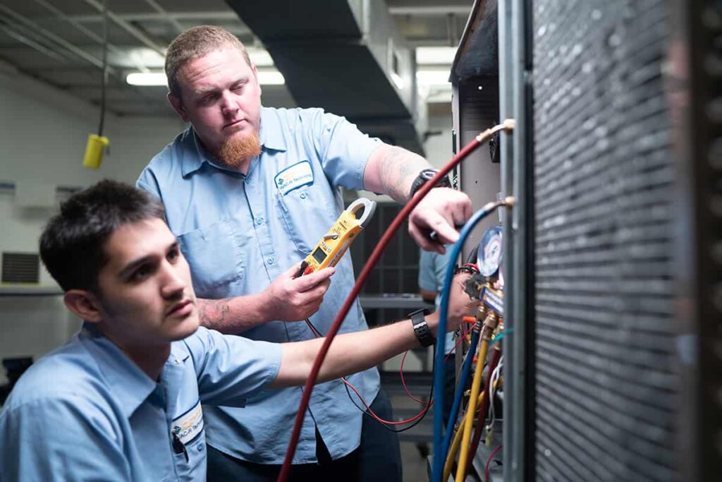Ask your HVAC company about its technicians’ training backgrounds. HVAC technicians are required to possess at least a high school diploma or GED before starting work. However, it is most common for technicians to have some college education or apprenticeship training. Many HVAC technicians obtain a full four-year degree within their specialty prior to obtaining licensure and certification. Some technicians instead complete a three- to five-year on-the-job apprenticeship program before obtaining licensure.